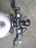 bon ba voila en bref tous mes carters moteur sont passés en noir brillant , mes jantes et mon cache culbu en epoxy rouge , le cadre et le bras oscillant sont egalement repeint en noir brillant ; le reservoir a été completement decapé a brut et traité avce un petit produit magique pour qu il ne s oxide plus et qu il garde son aspect metal brut .une petie revision (vidange , filtre a air et bougies neuves ) et c est quasi reparti pour de nouvelle aventure sous les couleur du OSE ...